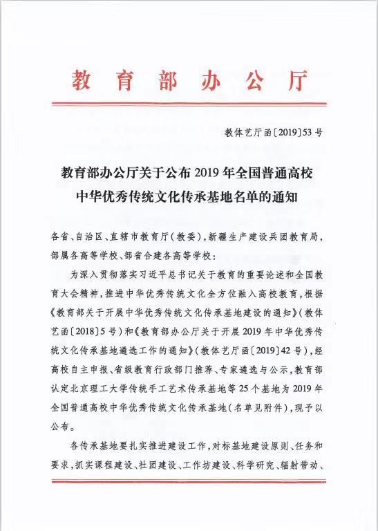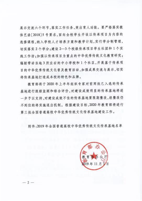 全国普通高校中华优秀传统文化传承基地认定旨在推进中华优秀传统文化全方位融入高校教育,引领高校学生自觉增强文化主体意识、强化文化担当。