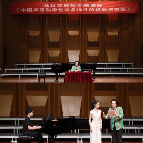 5月23日,著名声乐教育家、歌唱家,音乐学院院长马秋华教授在旗山校区音乐厅开展题为“中国声乐科学性与多样性的格局与审美”专题讲座。校党委副书记陈晓红、相关部处负责人、音乐学院党政领导、教师代表及2025届毕业生等500余人共同参与,讲座由音乐学院副院长叶佳亮主持。