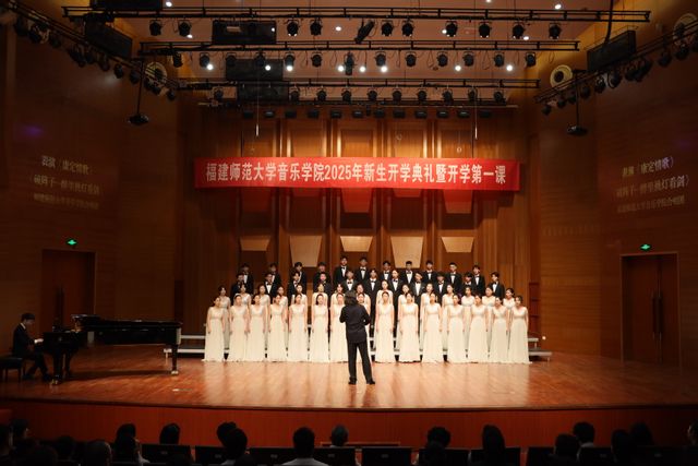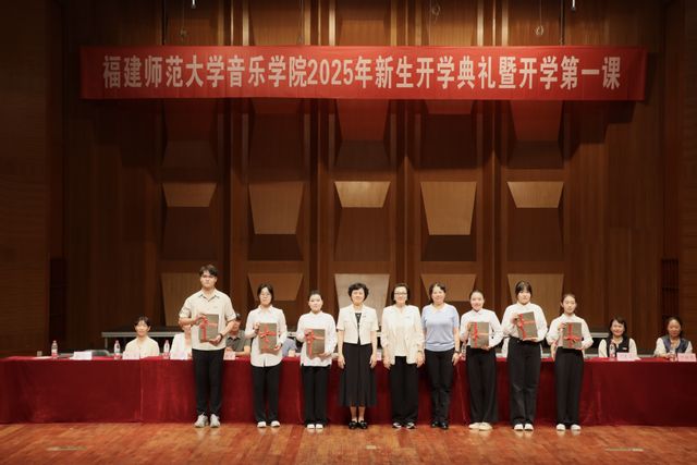 9月8日,音乐学院2025年新生开学典礼在音乐厅隆重举行。学院党委书记苏经强、院长马秋华、副院长陈新凤、副院长叶佳亮、党委副书记杜成煜、院务委员陈俊玲、院务委员叶子豪、关工委主任李金官、各系部负责人、各科室负责人、教师代表、全体辅导员以及2025级全体本硕博新生和部分新生家长参加本次典礼。典礼由学院党委副书记杜成煜主持。