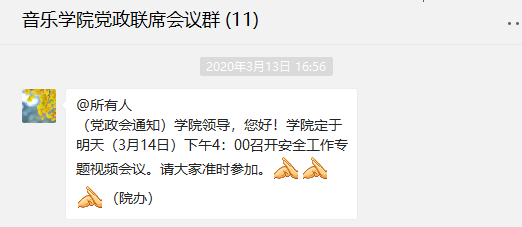 3月14日下午,音乐学院召开党政联席视频会议,专题研究安全有关工作。学院党政工领导班子全体成员和办公室相关负责人参加了会议。会议由学院党委陈林男书记主持。