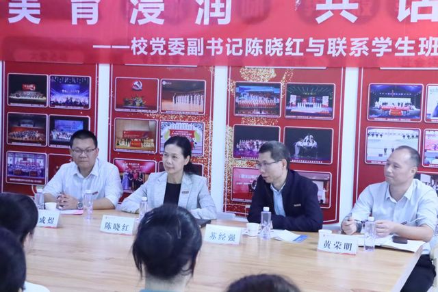 在会上,班级班长从班级构成、专业实践、班级文化、综合活动等方面详细介绍班级建设情况,展现了班级的蓬勃活力和青春面貌;民乐协会代表则围绕社团架构、社会服务、交流活动、荣誉成绩等内容汇报了社团发展现状,彰显了艺术学子深耕专业的热忱之心及回报社会的责任担当。在师生交流互动环节,同学们就专业发展、品德养成、职业规划、理论实践等方面踊跃提问,陈晓红副书记认真倾听同学们的心声,与同学们进行了亲切友好的交流,并对同学们积极进取的班级风貌给予了充分肯定。