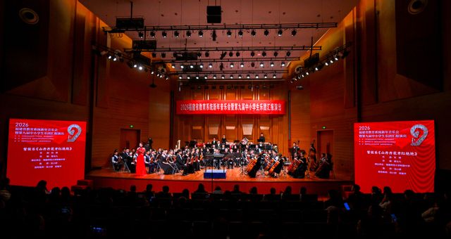 音乐会由我校传播学院教师主持,全省各地市教育局选送的12个中小学优秀乐团齐聚一堂,呈现了一场中西交融、古今对话的音乐盛宴。《北云下山》等原创民乐作品深度挖掘地方文化基因,将闽派音乐元素创新转化为现代听觉语言,赋予传统旋律以当代生命力;管弦乐《山丹丹花开红艳艳》展现了民族性与交响化的深度融合;《黎明之光》《蓝色多瑙河圆舞曲》等乐曲虽风格迥异、文化背景不同,却同样以生动的音乐语言,传递出充满希望、明朗向上的精神感染力,整场演出生动呈现了福建省中小学美育在文化传承与艺术创新方面的丰硕成果。