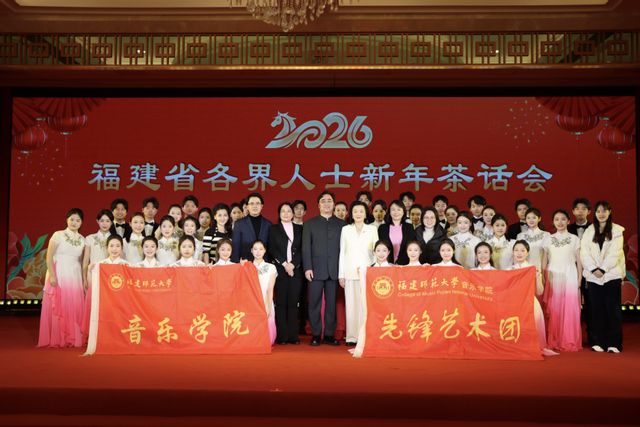 此次受邀亮相省各界人士新年茶话会,不仅为师生们提供了宝贵的舞台实践经验,更是对我院教育成果与师生专业水平的充分肯定,彰显了学院积极服务社会、参与福建文化建设的扎实能力与责任担当。学院将以此为契机,不断提升人才培养质量与艺术实践水平,积极引导师生用艺术服务人民、讴歌时代,为繁荣发展社会主义文艺事业、建设文化强省贡献力量。