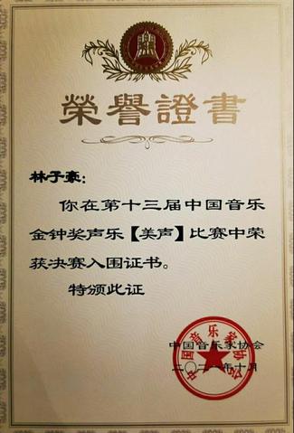 作为中国音乐界含金量最重的专业大赛,本次声乐(美声)比赛从杭州选拔赛(各省优秀歌手209人)到成都复赛(85人)、半决赛(30人),最终,林子豪老师凭借自身的突出实力和优异的舞台表现闯进决赛(12人),荣获决赛入围奖,这是福建声乐选手在该赛事上所取得的重大突破和最好成绩!