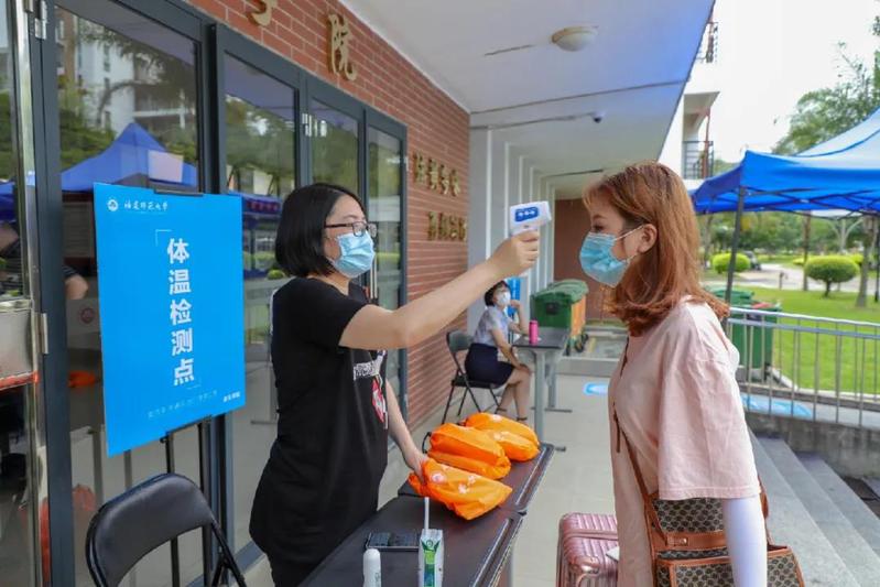 为确保学生顺利返校,学院高度重视,多次召开返校工作会议研究部署。围绕学生返校各个时间节点和流程环节细化措施,全面掌握学生健康状况及行程轨迹,精准确定返校对象,竭诚为同学们做好服务。在宿舍报到点,学院精心布置宿舍楼,营造温馨的返校环境,值班教师引导返校学生有序进行核验身份、体温测量、信息登记,并向返校学生发放装有口罩、体温计、矿泉水、防护手册的“爱心袋”。