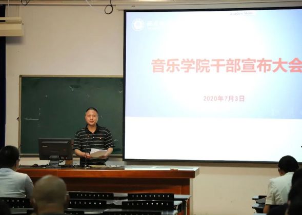 7月3日下午,音乐学院举行干部宣布大会。学院党政领导、全体教职工参加了会议。会议由院党委陈林男书记主持。