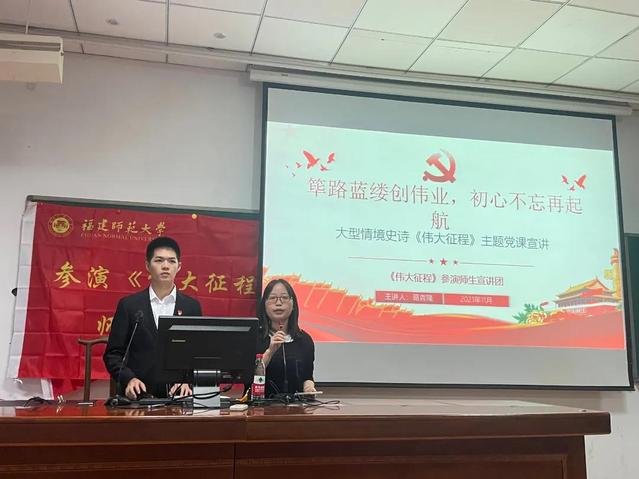 11月3日下午,我院在教学楼205教室为第58期入党积极分子和发展对象开展“强国有我——《伟大征程》”参演师生宣讲团宣讲活动,讲座由参演学生代表2018级葛青隆同学主讲,2018级辅导员陈珍老师主持。