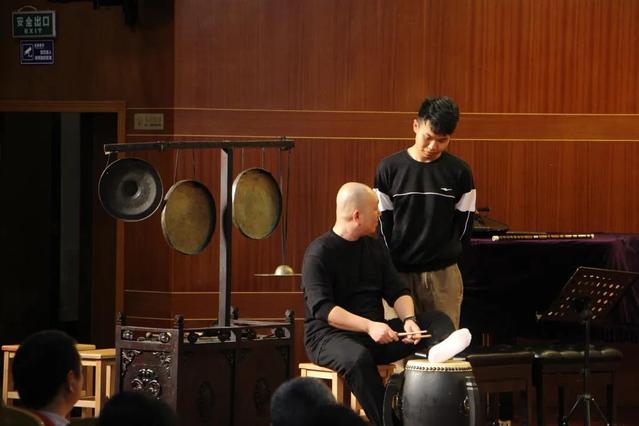 讲座以“梨园戏表演艺术赏析”为主题,折子戏《益春留伞》为例展开。讲座伊始,曾静萍老师对梨园戏进行了介绍,并和同学们分享自身学习梨园戏的经历。之后,她请乐手们依次向同学们展示了梨园戏表演中常用的乐器,通过赏析折子戏《益春留伞》和梨园戏著名唱段《陈三五娘》,带着同学们一同探索与分析。讲座最后,现场同学们与曾静萍老师热情互动,提出问题,并上台体验梨园戏中的唱段、手姿、脚步、身形、乐器等。