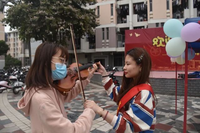 活动中,音院学子摇身一变成为“小老师”,为各个学院参与活动的同学教学乐器舞蹈的基础知识。共青团广场上,小提琴、琵琶、阮、古筝、吉他等乐器争奇斗艳,吸引了众多同学的目光,有《我和我的祖国》乐器合奏,琵琶曲目《火把节之夜》以及小提琴演奏的《查尔达什舞曲》。除此之外,“小老师”们还为同学们准备了简单又脍炙人口的歌曲供同学们学习,让大家在轻松愉快的氛围中感受音乐的魅力。